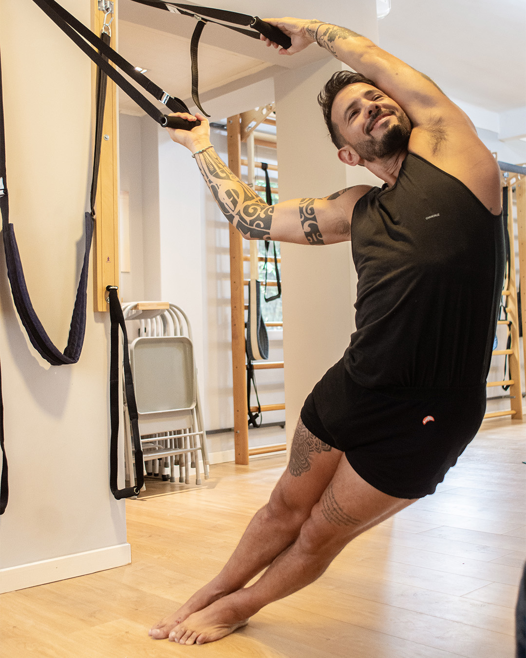 Y, además, diseñamos auxiliares de asanas y los fabricamos. Abordando la disciplina desde una perspectiva global.
