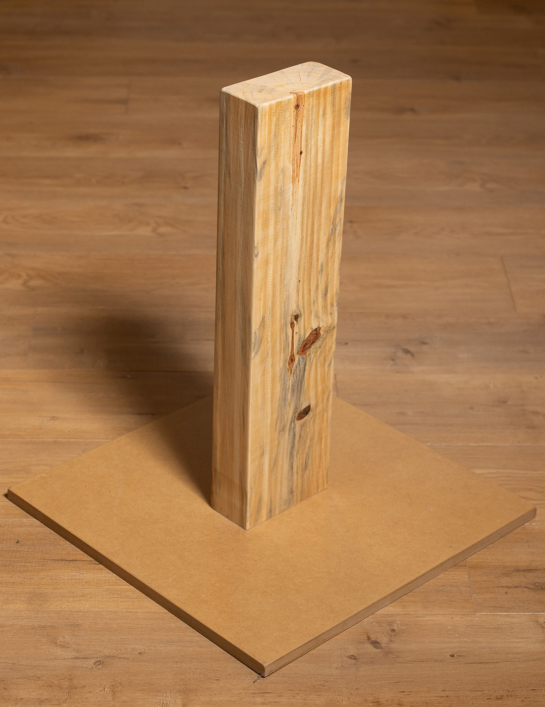 Este elemento asiste en la realización de la postura Pincha Mayurasana. Construido en madera maciza, el elemento proporciona estabilidad y referencias de posición.